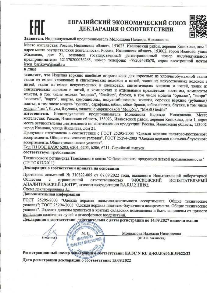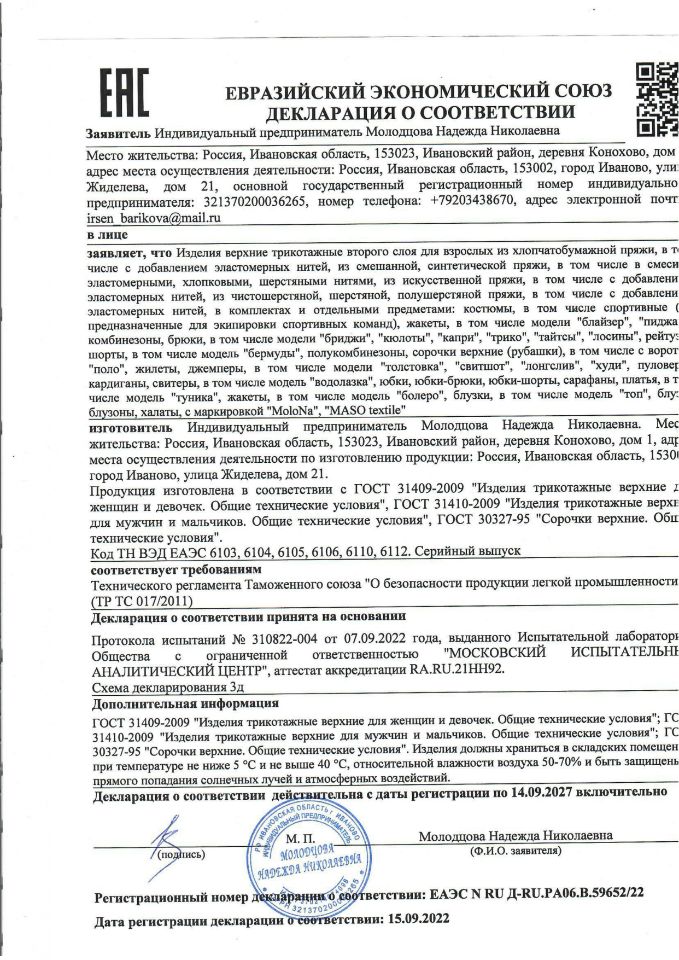 Полное официальное название предприятия Индивидуальный предприниматель Молодцова Надежда Николаевна