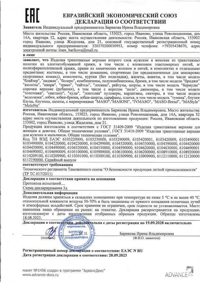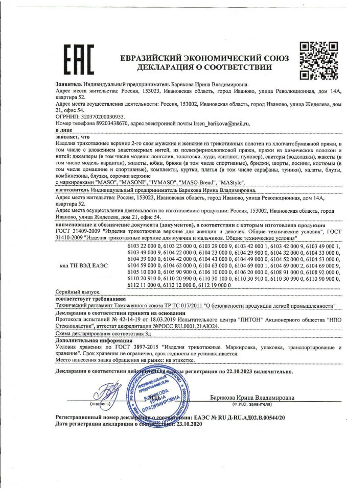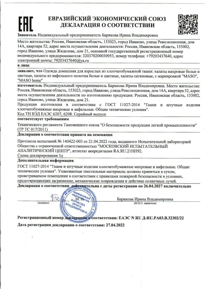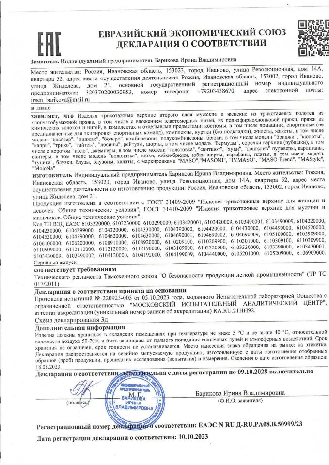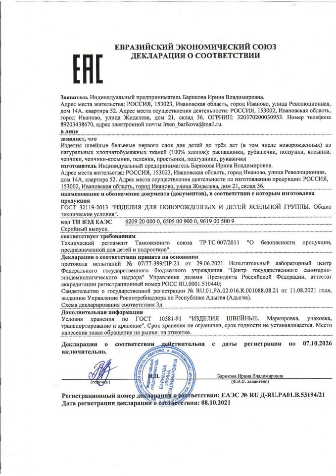 Полное официальное название предприятия Индивидуальный предприниматель Барикова Ирина Владимировна